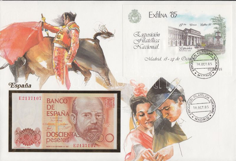 Spanyolország 1980. 200P dekoratív, nagyalakú bankjegyes, bélyeges bor... https://www.darabanth.com/de/131-Fernauktion/131.0/Numismatik/~400161/Spanyolorszag-1980-200P-dekorativ-nagyalaku-bankjegyes-belyeges-boritekon-belyegblokkal-C3~II372910