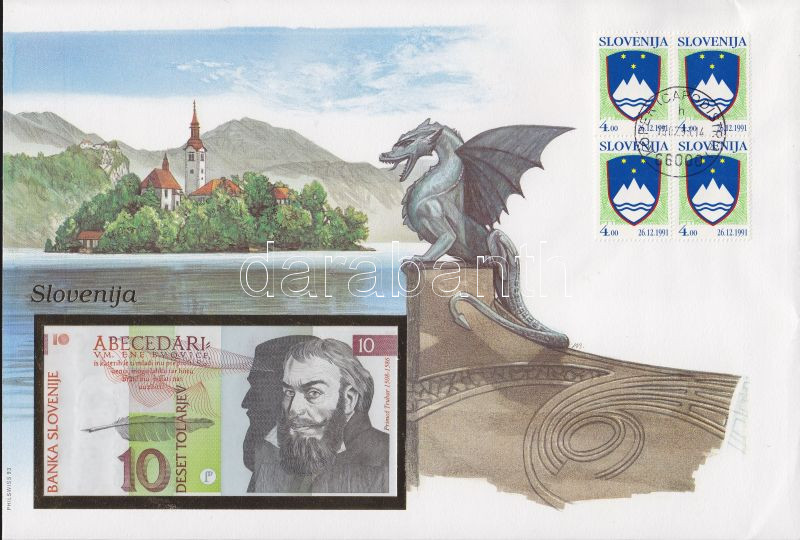 Szlovénia 1992. 10T dekoratív, nagyalakú bélyeges, bankjegyes borítéko... https://www.darabanth.com/de/131-Fernauktion/131.0/Numismatik/~400161/Szlovenia-1992-10T-dekorativ-nagyalaku-belyeges-bankjegyes-boritekon-belyegblokkal-alkal~II372895