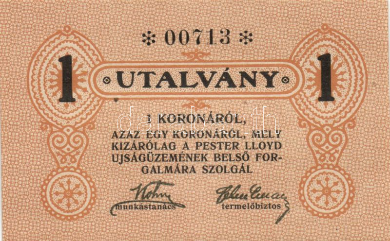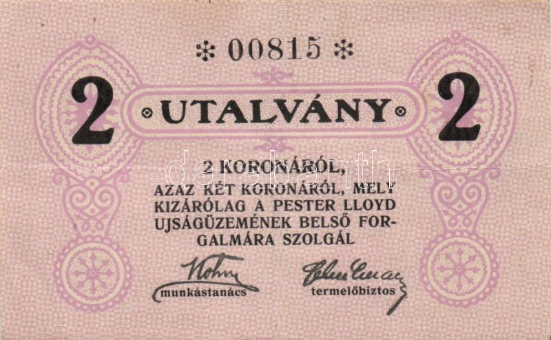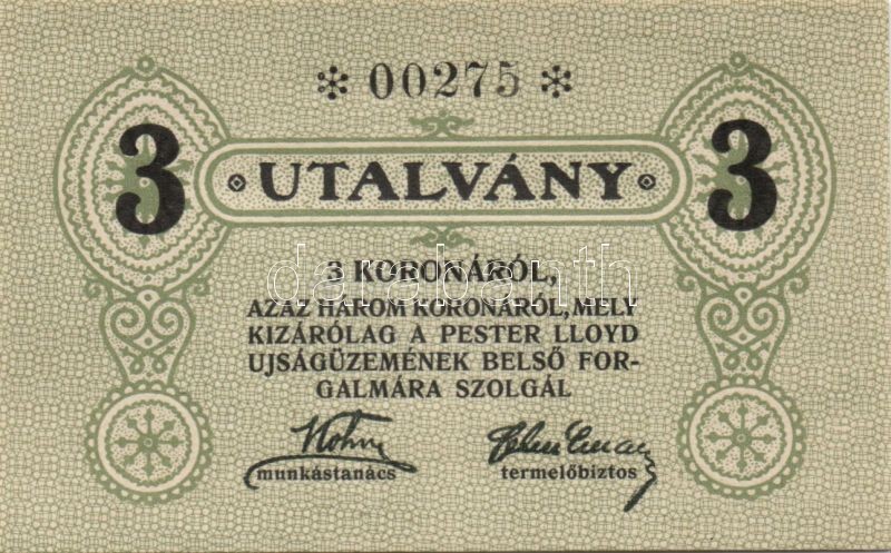 Beschreibung: Dátum nélkül "Pester Lloyd" 1K, 2K, 3K 3db szükségpénz T:I,II