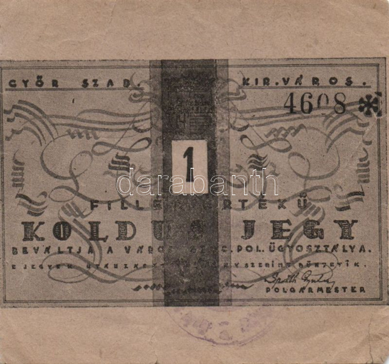 Győr 1f koldusjegy, kisebb beszakadásokkal T:II RR! Adamovszky katalóg... https://www.darabanth.com/de/131-Fernauktion/131.0/Numismatik/~400163/Gyor-1f-koldusjegy-kisebb-beszakadasokkal-TII-RR-Adamovszky-katalogus-ar-40000Ft~II372976