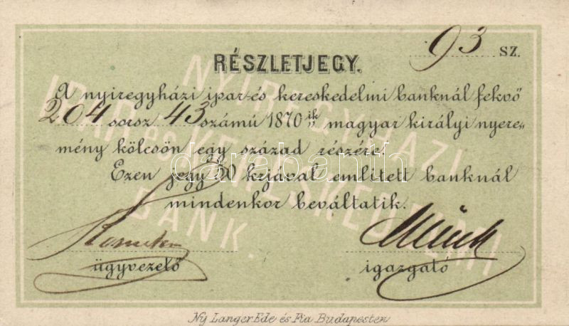 Nyíregyházi ipar és kereskedelmi bank 50kr részletjegy T:I https://www.darabanth.com/de/131-Fernauktion/131.0/Numismatik/~400163/Nyiregyhazi-ipar-es-kereskedelmi-bank-50kr-reszletjegy-TI~II372542