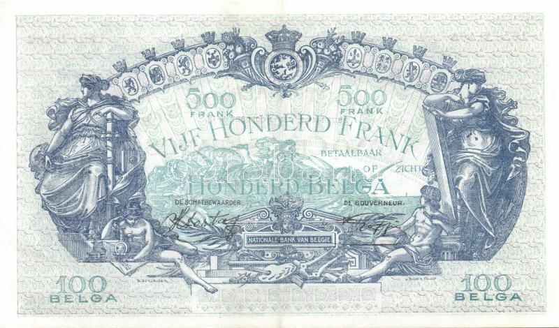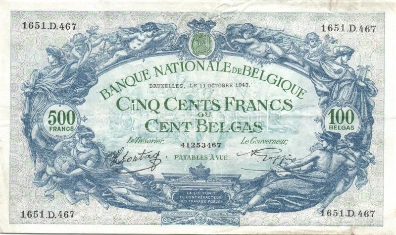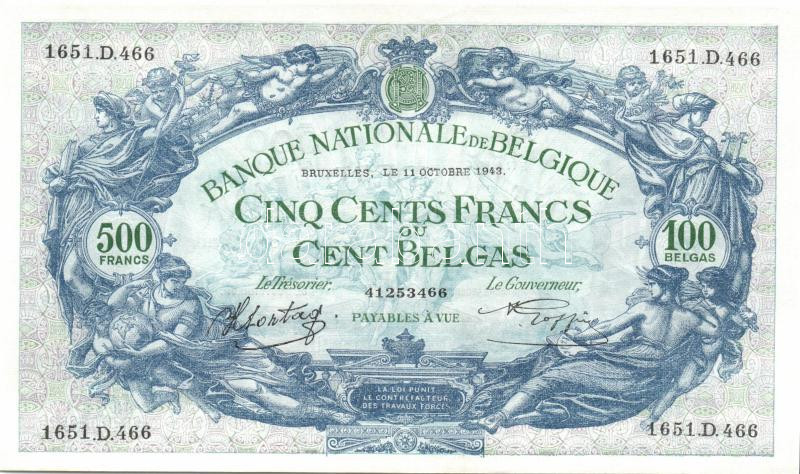 Beschreibung: Belgium 1943.10.11. 500Fr/100B (2x) egymásutáni sorszámmal T:II+,II