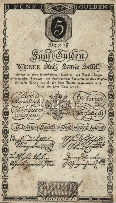 1806. 5G T:III foltos (javított szakadás) https://www.darabanth.com/de/131-Fernauktion/131.0/Numismatik/~400165/1806-5G-TIII-foltos-javitott-szakadas~II372525
