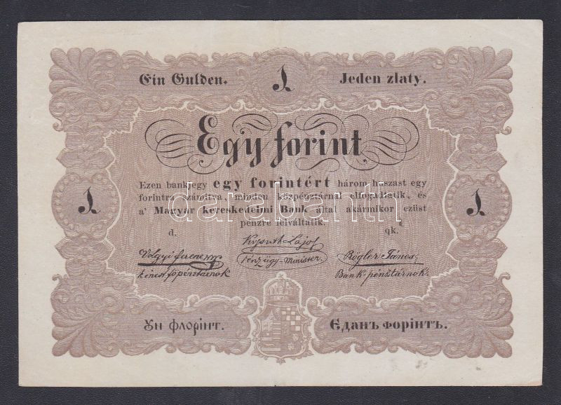 1848 1Ft T:II (alul kis papírelvékonyodás) https://www.darabanth.com/de/131-Fernauktion/131.0/Numismatik/~400165/1848-1Ft-TII-alul-kis-papirelvekonyodas~II374361