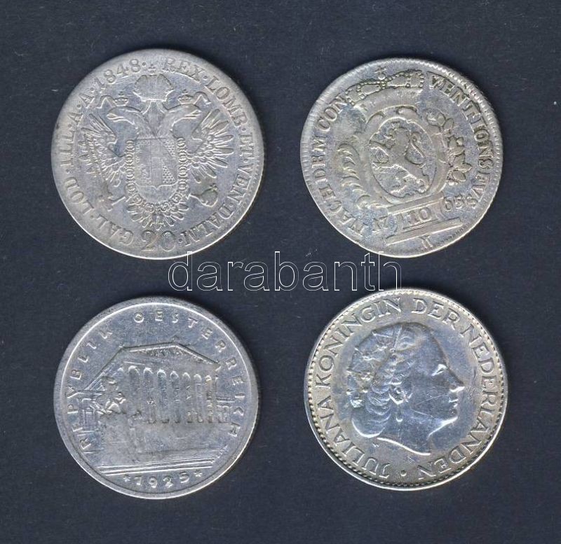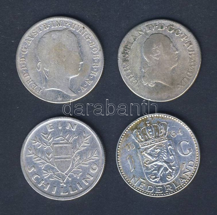 Beschreibung: Kis ezüst tétel benne: 1765-1964. Ausztria, Hollandia, Német Államok 4db pénzérme T:vegyes