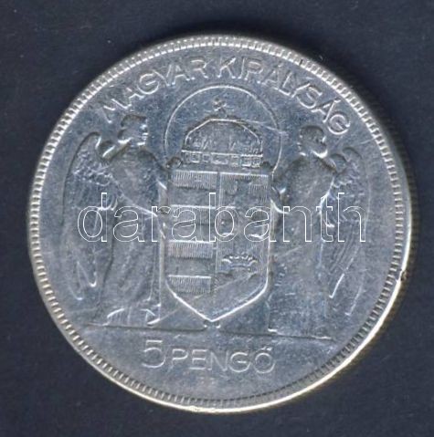Beschreibung: 1930. 5P Ag "Horthy jobbra" T:3 apró ph.