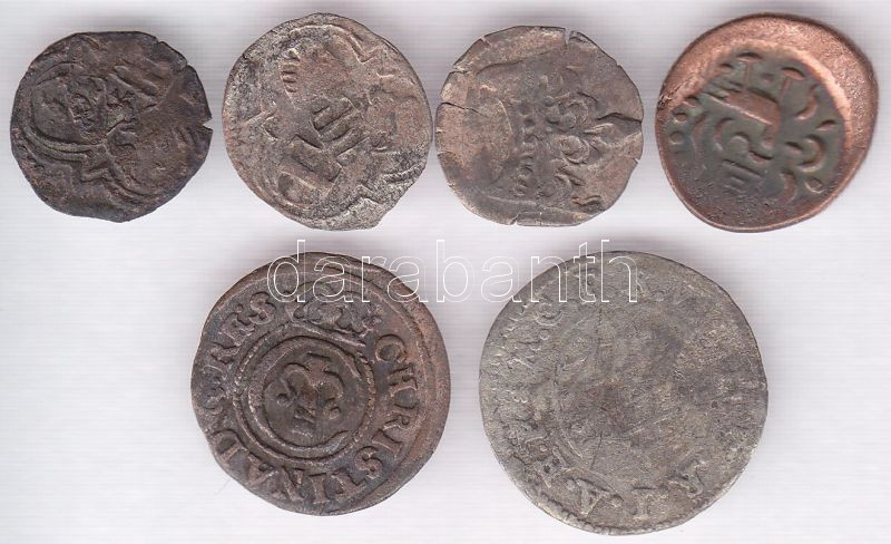 Beschreibung: 6db klf középkori pénz ezüstökkel! T:vegyes