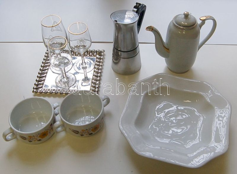 Vegyes bolhapiac tétel, benne: kávéfőző, porcelán tál és teás kiöntő, ... https://www.darabanth.com/de/132-Fernauktion/132.0/Andere-Sammelgebiete/~900187/Vegyes-bolhapiac-tetel-benne-kavefozo-porcelan-tal-es-teas-kionto-uvegpoharak-talc~II376219