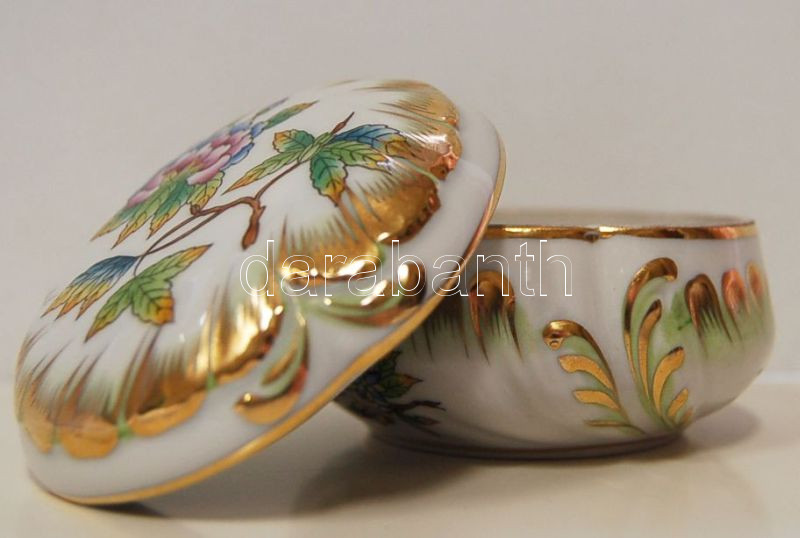 Beschreibung: Herendi jelzéssel ellátott Viktória-mintás porcelán bonbonier / Herend chinaware bonbonier 4x8 cm