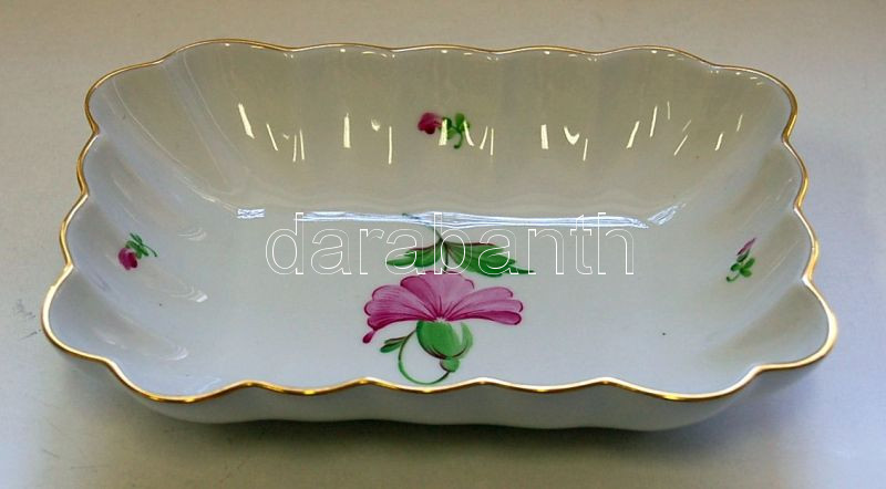 Beschreibung: Herendi jelzéssel ellátott virág mintás kézzel festett fodros szélű aranyozott porcelán tálka / Herend handpainted chinaware porringer 18x14