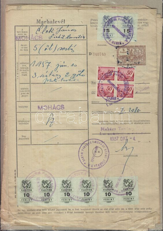 10 db marhalvél az 1950-es évekből okmánybélyegekkel https://www.darabanth.com/de/133-Fernauktion/133.0/Andere-Sammelgebiete/Dokument~260/10-db-marhalvel-az-1950-es-evekbol-okmanybelyegekkel~II382474