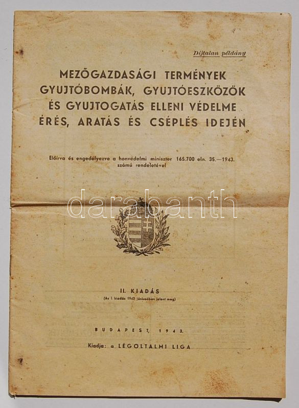 1943 Légoltalmi Liga: Mg-i termények gyújtóbombák és gyújtogatás ellen... https://www.darabanth.com/de/133-Fernauktion/133.0/Andere-Sammelgebiete/Drucksachen~273/1943-Legoltalmi-Liga-Mg-i-termenyek-gyujtobombak-es-gyujtogatas-elleni-vadelme~II380518