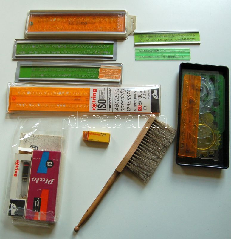 Műszaki rajzeszközök: vonalzók, sablonok, kihúzók, Rotring hegyek stb. https://www.darabanth.com/de/133-Fernauktion/133.0/Andere-Sammelgebiete/Flohmarkt~276/Muszaki-rajzeszkozok-vonalzok-sablonok-kihuzok-Rotring-hegyek-stb~II379828