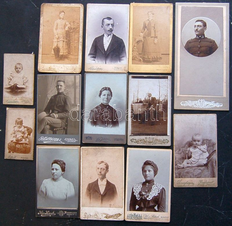Beschreibung: cca 1880-1900 13 db keményhátú fotó, klf. magyar fényképészek műterméből, benne katonai is / 13 Vintage photos with military mainly 7x11 cm