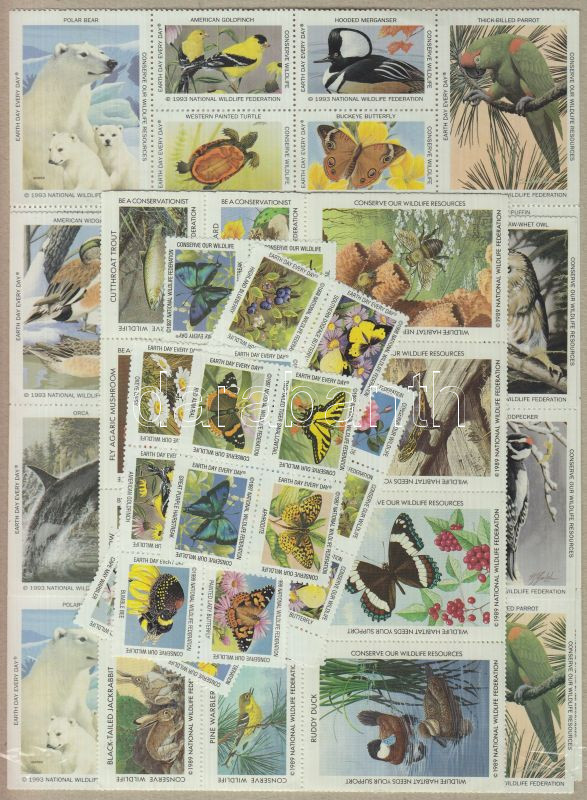 Beschreibung: 140 db állat - virág motívumú USA jótékonysági bélyeg, közte teljes ívek