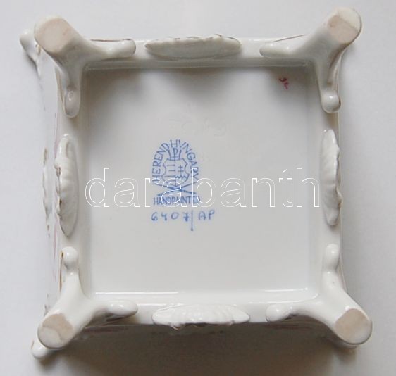 Beschreibung: Herendi jelzéssel ellátott kézzel festett Apponyi-mintás szögletes porcelán kaspó / Herend handpainted chinaware pot 10 cm