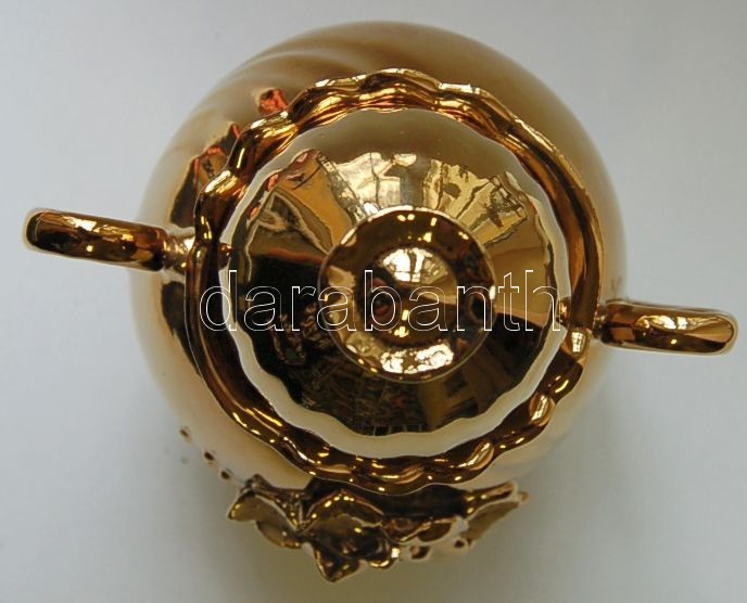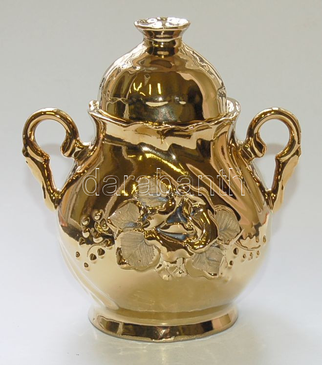 Beschreibung: Jelzés nélküli aranyozott porcelán cukortartó 15cm magas