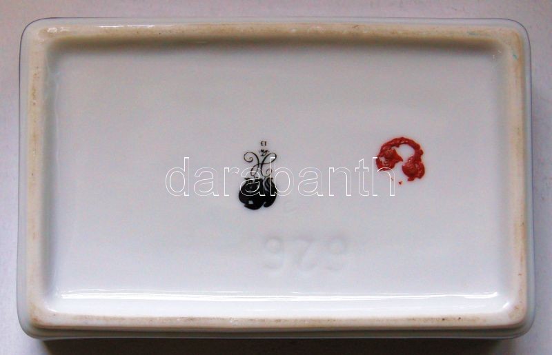 Beschreibung: Szász Endre által tervezett Hollóházi porcelán bonbonnier / Faces designed by Endre Szasz Hollohaza chinaware bonboniere 15x10x4 cm