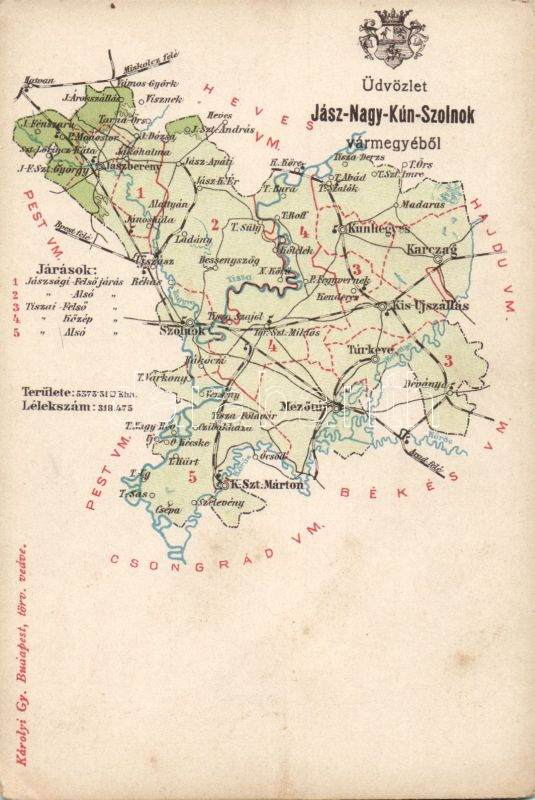 Jász-Nagykun-Szolnok County map https://www.darabanth.com/de/133-Fernauktion/133.0/Ansichtskarten/Landkarte~400084/Jasz-Nagykun-Szolnok-County-map~II379334