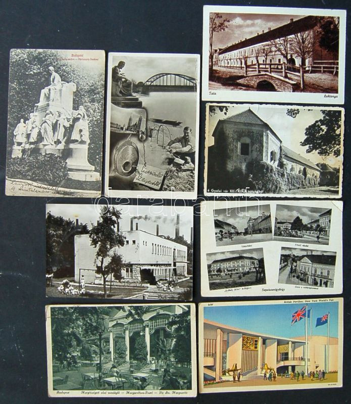 Beschreibung: 300 db modern városképes lap, többnyire magyar 50-es évek, néhány régivel és egy Pécs művészi leporello
