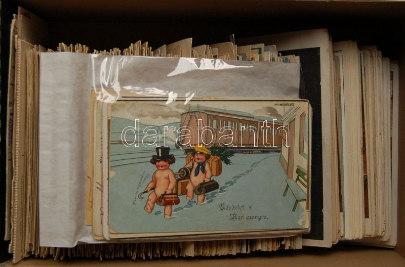 Vegyes motívum képeslapok, benne magyar grafika, húsvét, karácsony, újév, festménylapok, költők, színészek, festmények, érdekes vegyes anyag sok jobbal több mint 550 db / Nice lot of thematic postcards, art and artists, greetings, very interesting colourful material, more than 550 pcs