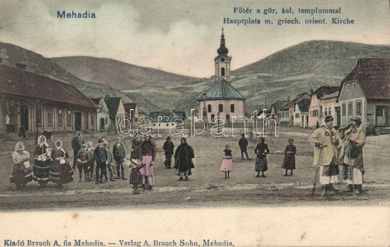 Mehádia main square with Greek Catholic church https://www.darabanth.com/de/133-Fernauktion/133.0/Ansichtskarten/Siebenburgen~400007/Mehadia-main-square-with-Greek-Catholic-church~II381469
