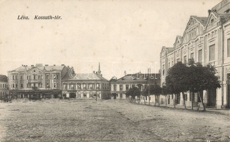 Beschreibung: Léva Kossuth square with the photo shop of Artur Nagy and the shops of Gyula Borcsányi and Dávid Knapp (fl)