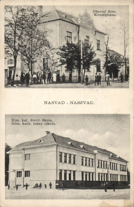 Naszvad Town hall and Catholic girls school So.Stpl https://www.darabanth.com/de/133-Fernauktion/133.0/Ansichtskarten/Slowakei~400010/Naszvad-Town-hall-and-Catholic-girls-school-SoStpl~II379669