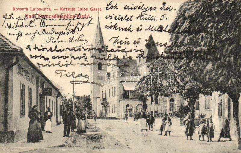 Beschreibung: Trencsénteplic spa Kossuth street with restaurant