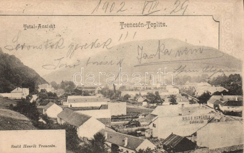 Trencsénteplic with Villa Hungaria Cursalon https://www.darabanth.com/de/133-Fernauktion/133.0/Ansichtskarten/Slowakei~400010/Trencsenteplic-with-Villa-Hungaria-Cursalon~II381287