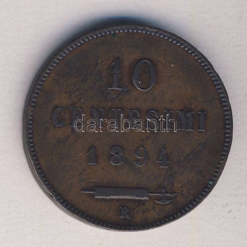 San Marino 1894R. 10c T:2-/3+ ph. https://www.darabanth.com/de/133-Fernauktion/133.0/Numismatik/Auslandische-Munzen~400135/San-Marino-1894R-10c-T2-3plus-ph~II380787