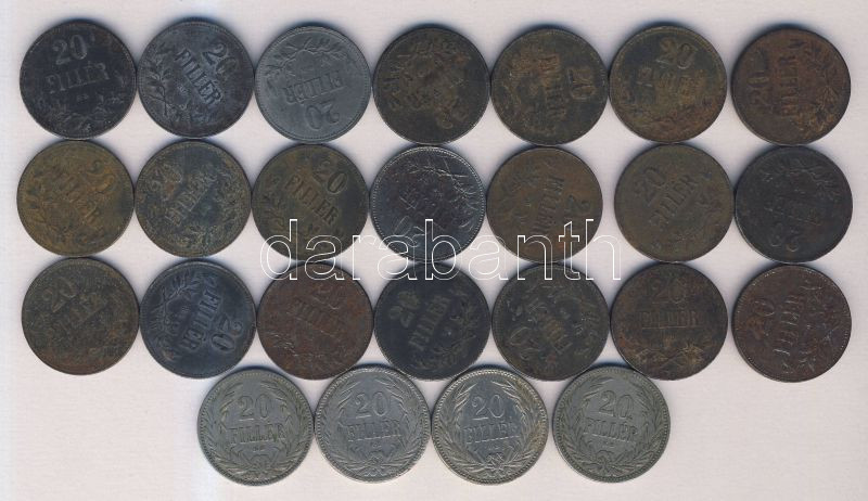1892-1914. 20f (4x) + 1916-1921. 20f (21x) T:3 https://www.darabanth.com/de/133-Fernauktion/133.0/Numismatik/Munzen-mit-Ungarischen-Munzzeichen~400142/1892-1914-20f-4x-plus-1916-1921-20f-21x-T3~II380598