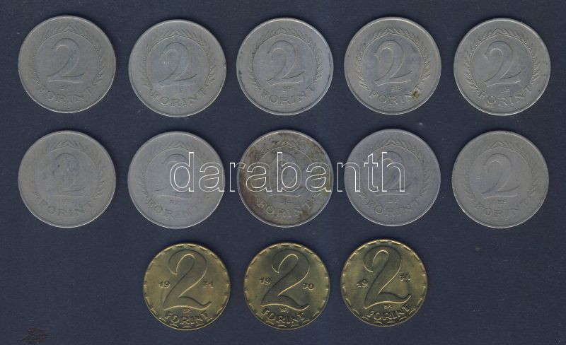 Beschreibung: 1950-1965. 2Ft 10klf évszámmal + 1970-74. 2Ft 3klf évszámmal T:2,3 összesen 13db.