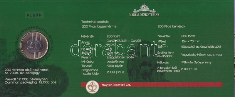 2009. 200Ft elsőnapi veret + 2006. 200Ft bankjegy "Búcsú a 200Ft-os ba... https://www.darabanth.com/de/133-Fernauktion/133.0/Numismatik/Munzen-mit-Ungarischen-Munzzeichen~400142/2009-200Ft-elsonapi-veret-plus-2006-200Ft-bankjegy-Bucsu-a-200Ft-os-bankjegytol-diszcsomagola~II382418