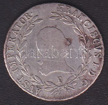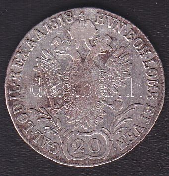 Ausztria/magyar verdejel 1818B 20Kr Ag T:3 https://www.darabanth.com/de/133-Fernauktion/133.0/Numismatik/Munzen-mit-Ungarischen-Munzzeichen~400142/Ausztriamagyar-verdejel-1818B-20Kr-Ag-T3~II382349
