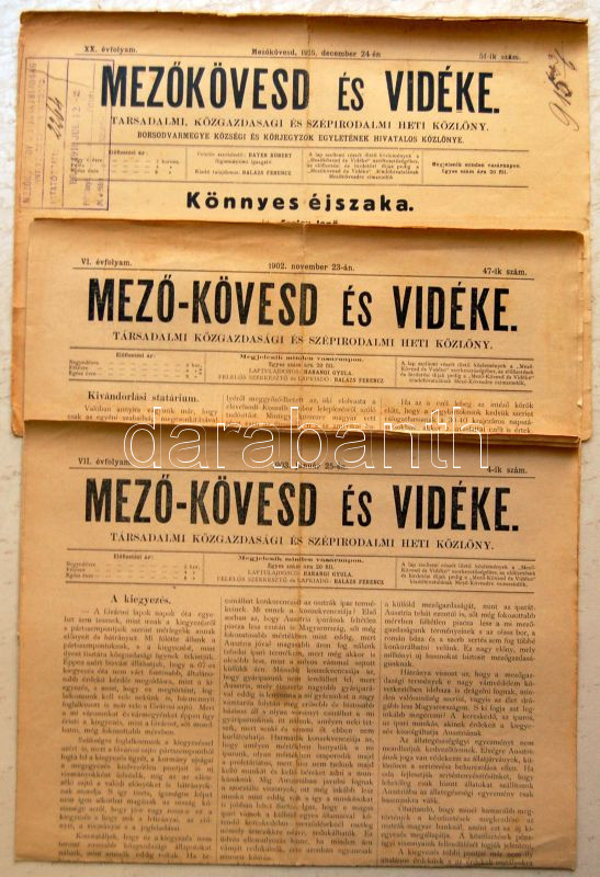 1902-1915 Mezőkövesd és vidéke heti közlöny 3 száma viseltes állapotba... https://www.darabanth.com/de/134-Fernauktion/134.0/Andere-Sammelgebiete/Drucksachen~195/1902-1915-Mezokovesd-es-videke-heti-kozlony-3-szama-viseltes-allapotban~II383135