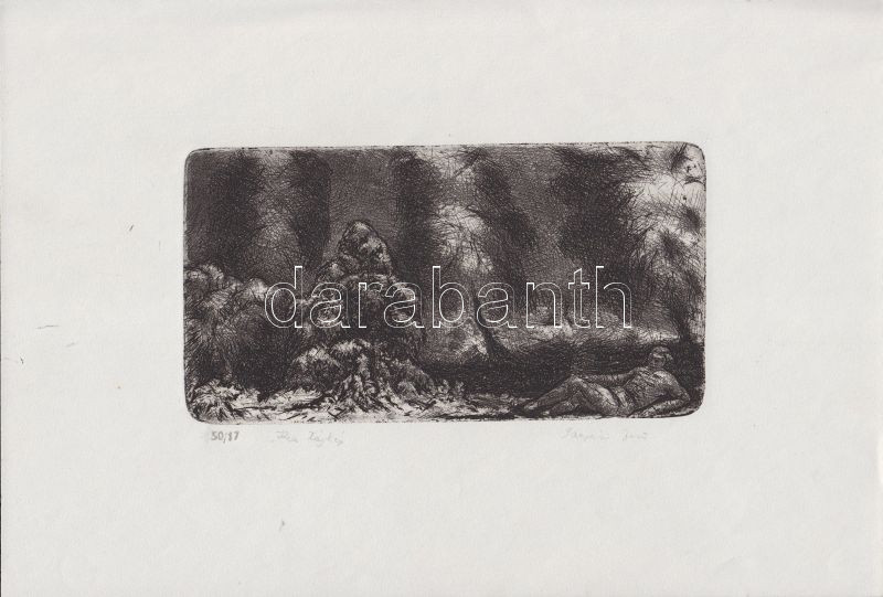 Beschreibung: Tarjáni Simkovics Jenő (1885-1950): Kis tájkép, rézkarc-papír, jelzett, 50/17 30x21cm