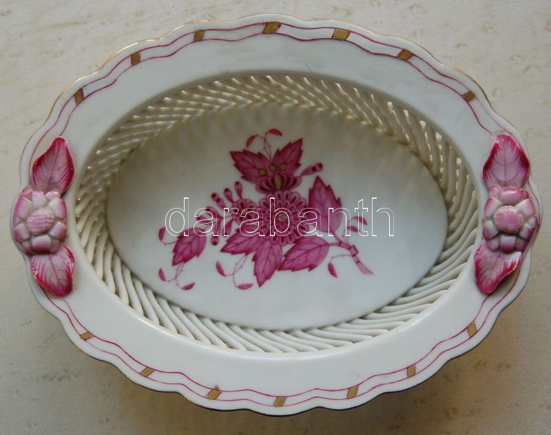 Beschreibung: Herendi jelzéssel ellátott Apponyi-mintás áttört jubileumi porcelán tálka / Herend chinaware tray 14 cm
