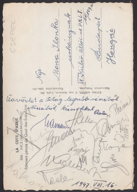 1947 Csepeli labdarúgó csapat tagjainak aláírása képeslapon https://www.darabanth.com/de/134-Fernauktion/134.0/Andere-Sammelgebiete/Signatur~185/1947-Csepeli-labdarugo-csapat-tagjainak-alairasa-kepeslapon~II384575