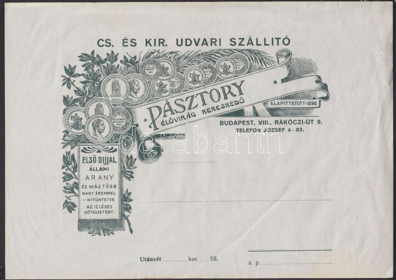 cca 1900 Pásztory virágkereskedő dekoratív csomagra ragasztható vignet... https://www.darabanth.com/de/134-Fernauktion/134.0/Andere-Sammelgebiete/Werbungen~189/cca-1900-Pasztory-viragkereskedo-dekorativ-csomagra-ragaszthato-vignetta-30x20-cm~II383859