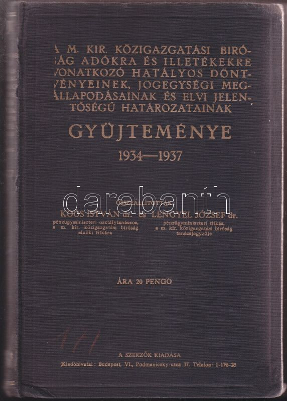 1934-37 Koós István és Lengyel József A m. kir Közigazgatási Bíróság h... https://www.darabanth.com/de/135-Fernauktion/135.0/Andere-Sammelgebiete/Bucher-sonstige-Raritaten~303/1934-37-Koos-Istvan-es-Lengyel-Jozsef-A-m-kir-Kozigazgatasi-Birosag-hatarozatainak-gyujt~II382392