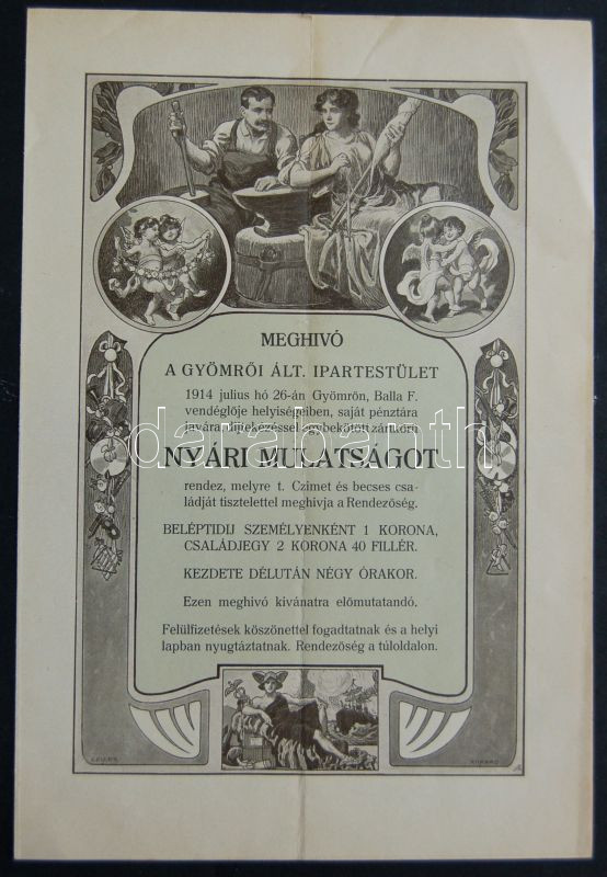 1914 Meghívó a Gyömrői Ált. Ipartestület Nyári Mulatságára https://www.darabanth.com/de/135-Fernauktion/135.0/Andere-Sammelgebiete/Drucksachen~298/1914-Meghivo-a-Gyomroi-Alt-Ipartestulet-Nyari-Mulatsagara~II389287