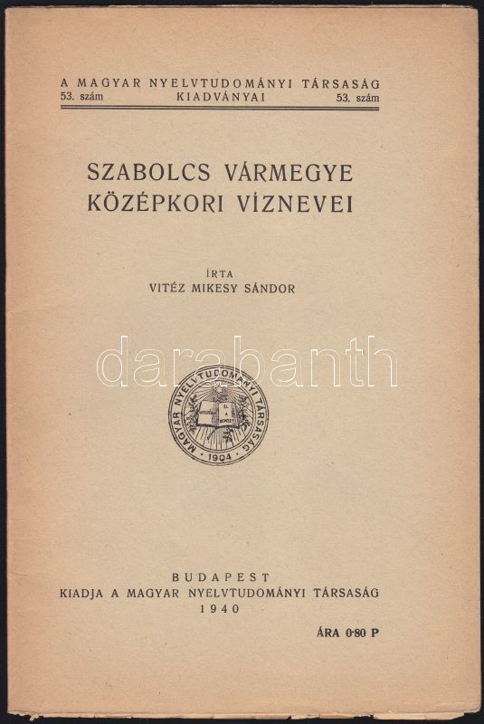 1940 Szabolcs Vármegye Középkori víznevei https://www.darabanth.com/de/135-Fernauktion/135.0/Andere-Sammelgebiete/Drucksachen~298/1940-Szabolcs-Varmegye-Kozepkori-viznevei~II387590