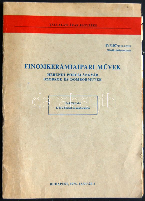 1975 Bp., A Finomkerámiaipari Művek Herendi Porcelán szobrok és dombor... https://www.darabanth.com/de/135-Fernauktion/135.0/Andere-Sammelgebiete/Drucksachen~298/1975-Bp-A-Finomkeramiaipari-Muvek-Herendi-Porcelan-szobrok-es-dombormuvek-vallalati-arjegyz~II387601