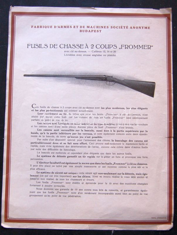 Frommer vadászpuskát bemutató nagyméretű nyomtatvány (23.5 × 32 cm) https://www.darabanth.com/de/135-Fernauktion/135.0/Andere-Sammelgebiete/Drucksachen~298/Frommer-vadaszpuskat-bemutato-nagymeretu-nyomtatvany-235-C397-32-cm~II387025