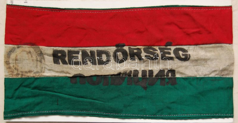 1945 Rendőrségi karszalag kétnyelvű és rendőrségi pecséttel https://www.darabanth.com/de/135-Fernauktion/135.0/Andere-Sammelgebiete/Flohmarkt~305/1945-Rendorsegi-karszalag-ketnyelvu-es-rendorsegi-pecsettel~II387570
