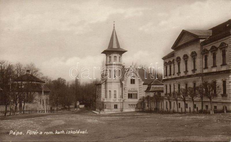 Pápa főtér és katolikus iskola https://www.darabanth.com/de/135-Fernauktion/135.0/Ansichtskarten/Ungarn~400006/Papa-foter-es-katolikus-iskola~II387718