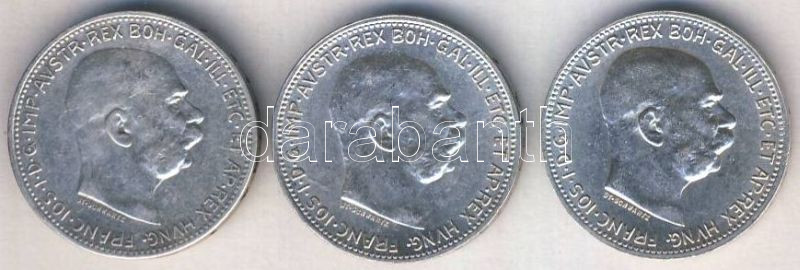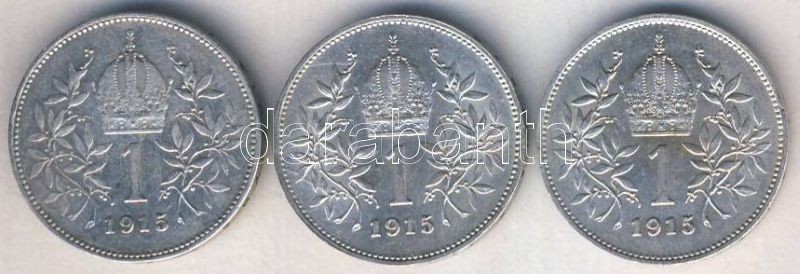 Ausztria 1915. 1K (3x) Ag T:vegyes https://www.darabanth.com/de/135-Fernauktion/135.0/Numismatik/Auslandische-Munzen~400034/Ausztria-1915-1K-3x-Ag-Tvegyes~II387182