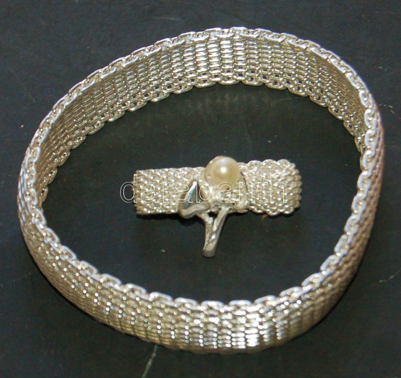 Beschreibung: Díszes női Ag gyűrű és Ag karkötő garnitúra (összesen 39,12g)