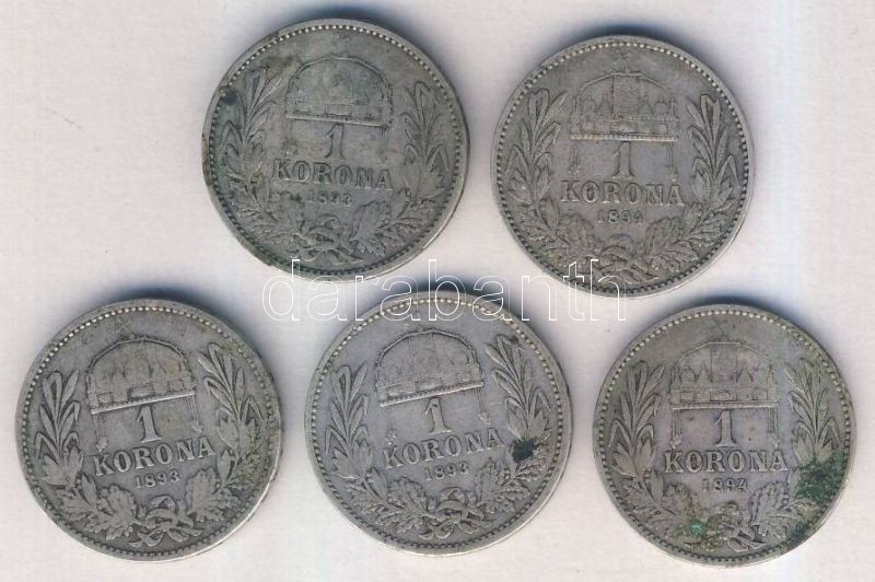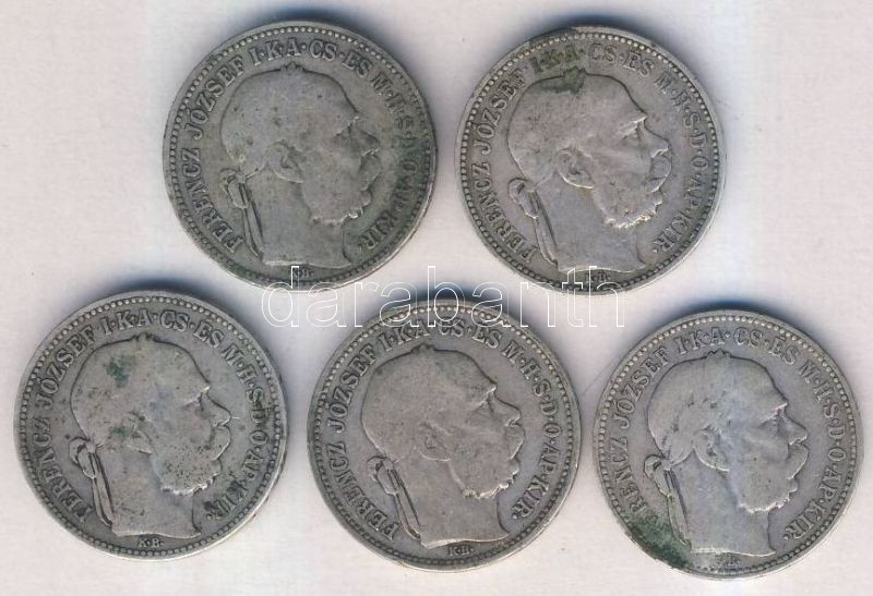 Beschreibung: 1893-1894. 1K (5x) Ag T:vegyes